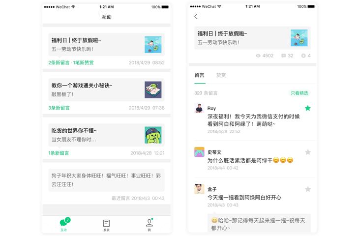 1、可以及时收到留言消息,进行回复、精选和置顶。