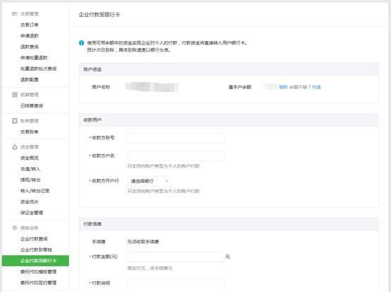 2.进入交易中心-企业付款到银行卡页面进行付款,API接口将在本周内逐步开放