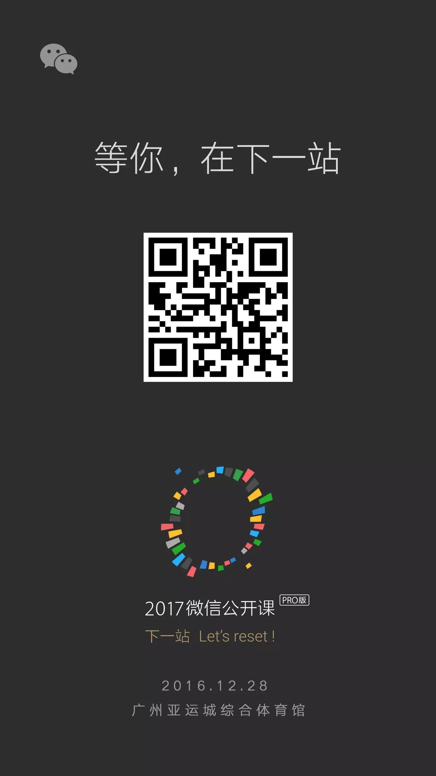 2016年12月28日,2017微信公开课Pro版与你相约在广州,主题为“下一站”,已正式开放售票。