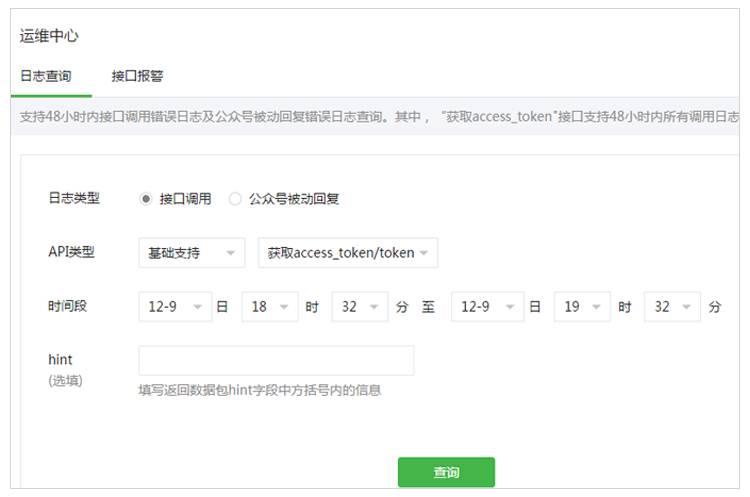 1、新增运维中心,提供接口日志查询功能。当公众号接口调用发生异常时,开发者可在运维中心查看调用日志,帮助排查问题。