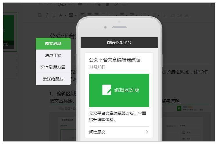 1、文章编辑器新增更为便捷的预览功能,在电脑上直接完成文章的预览。