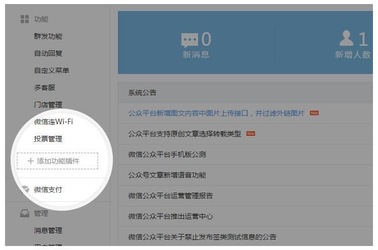 1. 运营者在功能栏目下,点击添加功能插件
